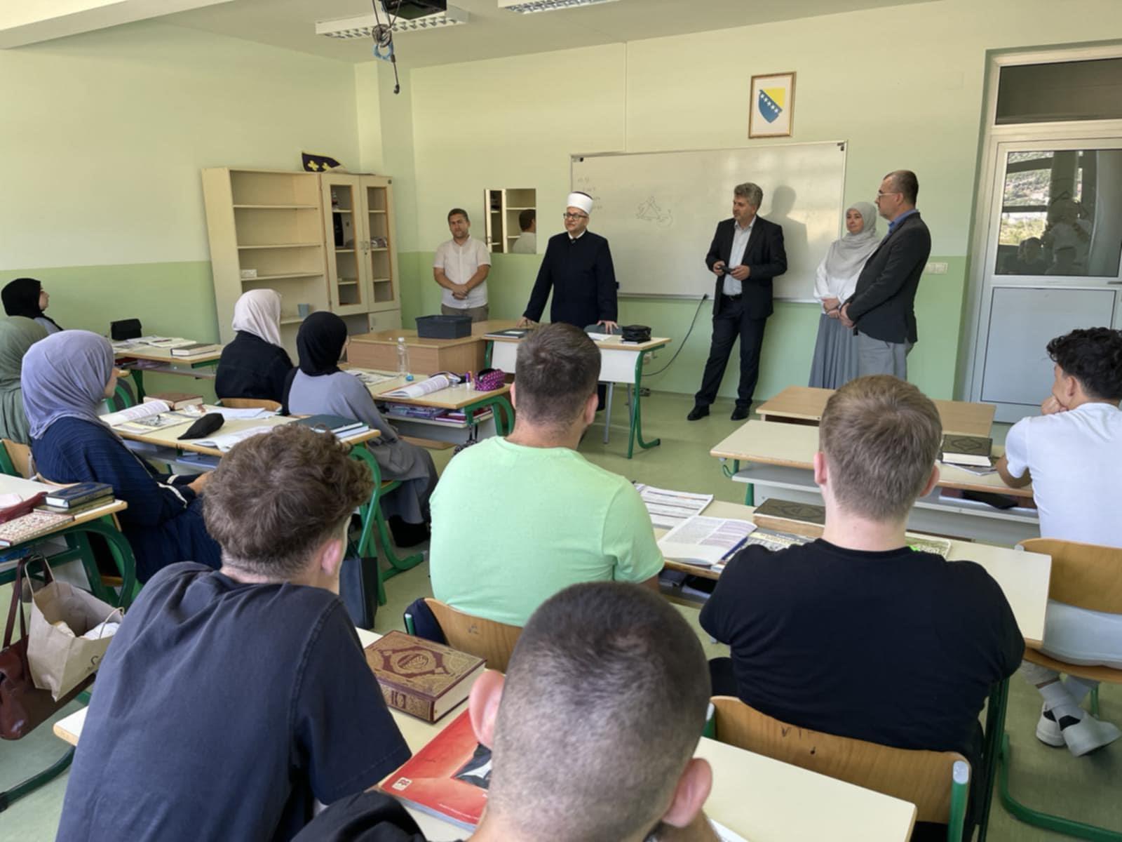 Muftija je posjetio i odjeljenja maturanata naše škole, uputio im svoju poruku, ali i izrazio radost što su stigli do pred kraj medresanskog školovanja, te ih pozvao da smjelo koračaju dalje, kako kroz Medresu, tako i kroz život koji je pred njima.