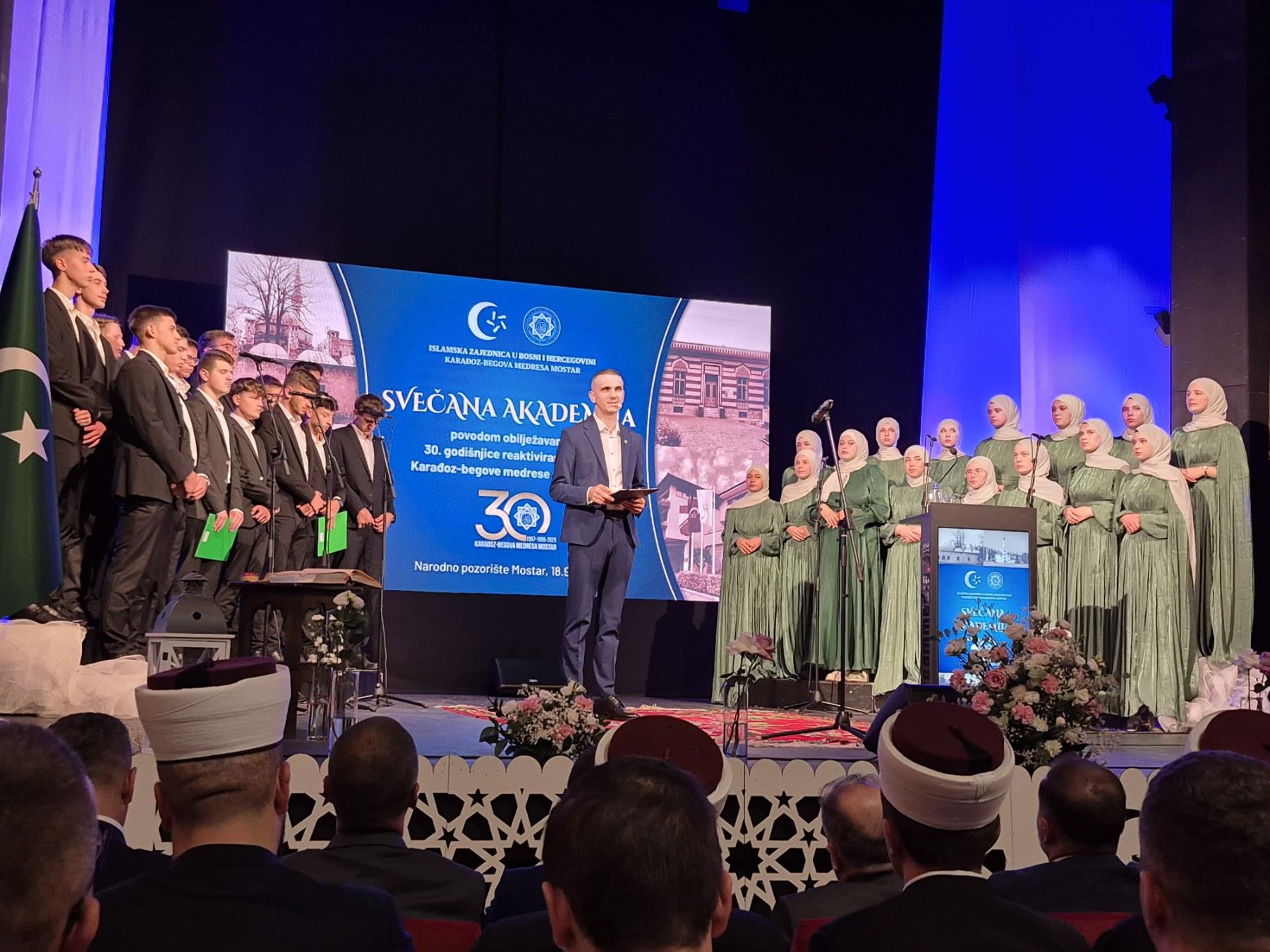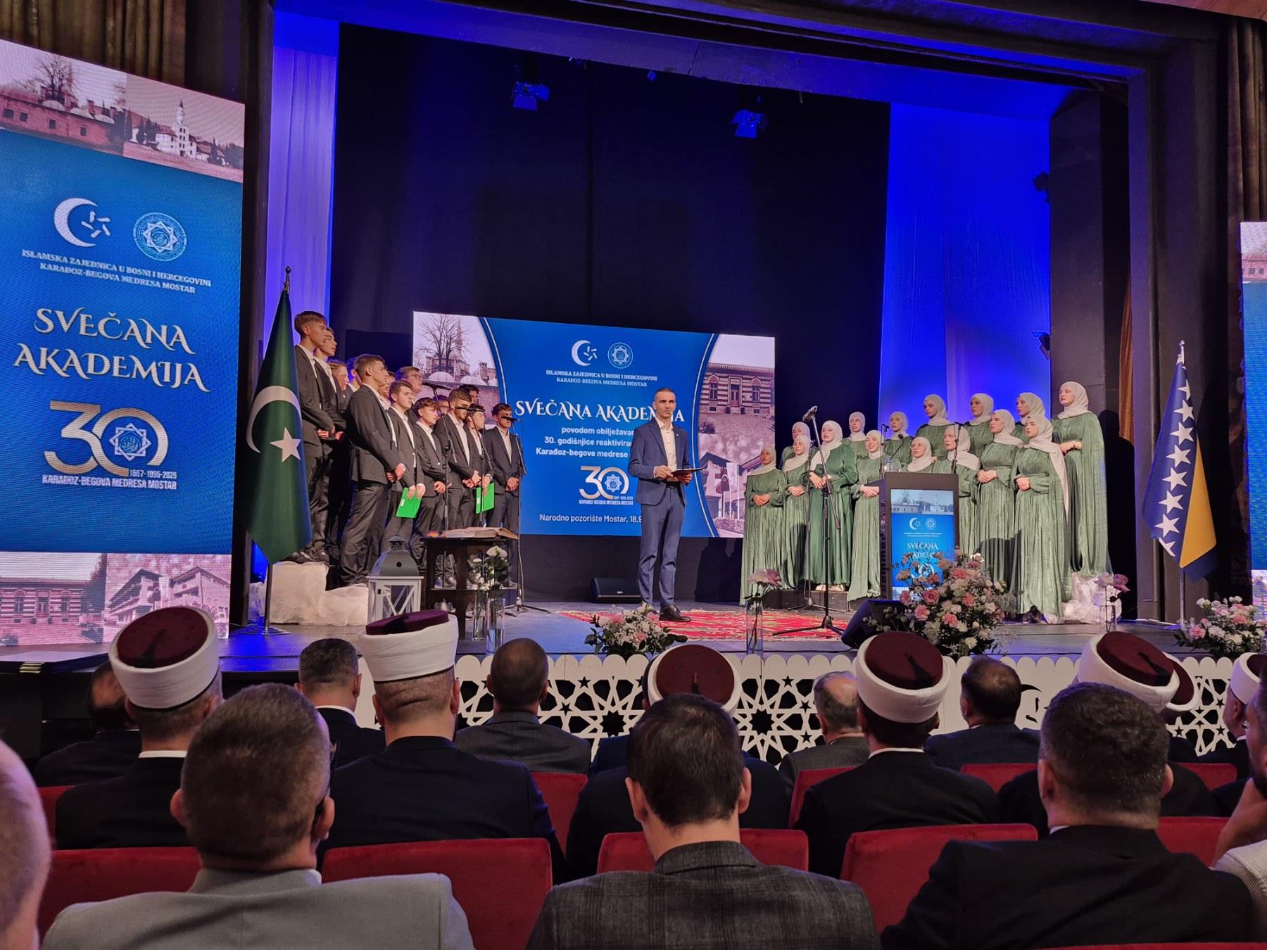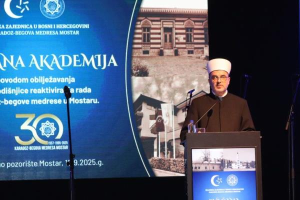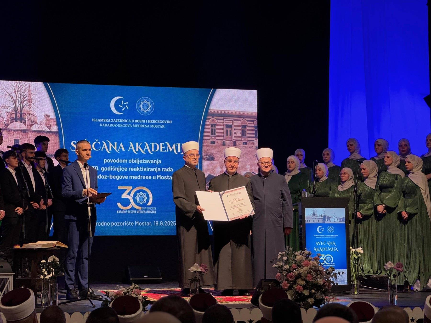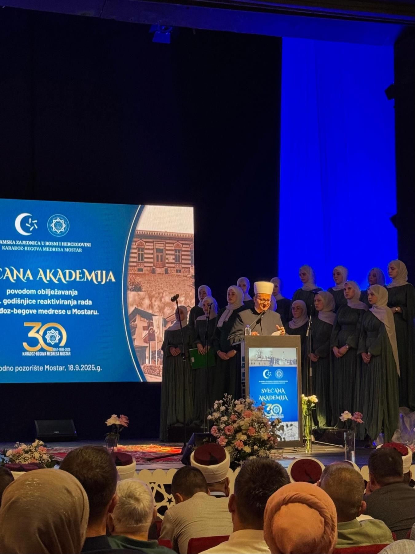 Svečana akademija povodom 30. godišnjice reaktiviranja rada Karađoz-begove medrese i obilježavanja 468 godina od osnivanja ove druge po starini odgojno-obrazovne institucije u Bosni i Hercegovini održana je 18. septembra 2025. godine u Narodnom pozorištu Mostar.