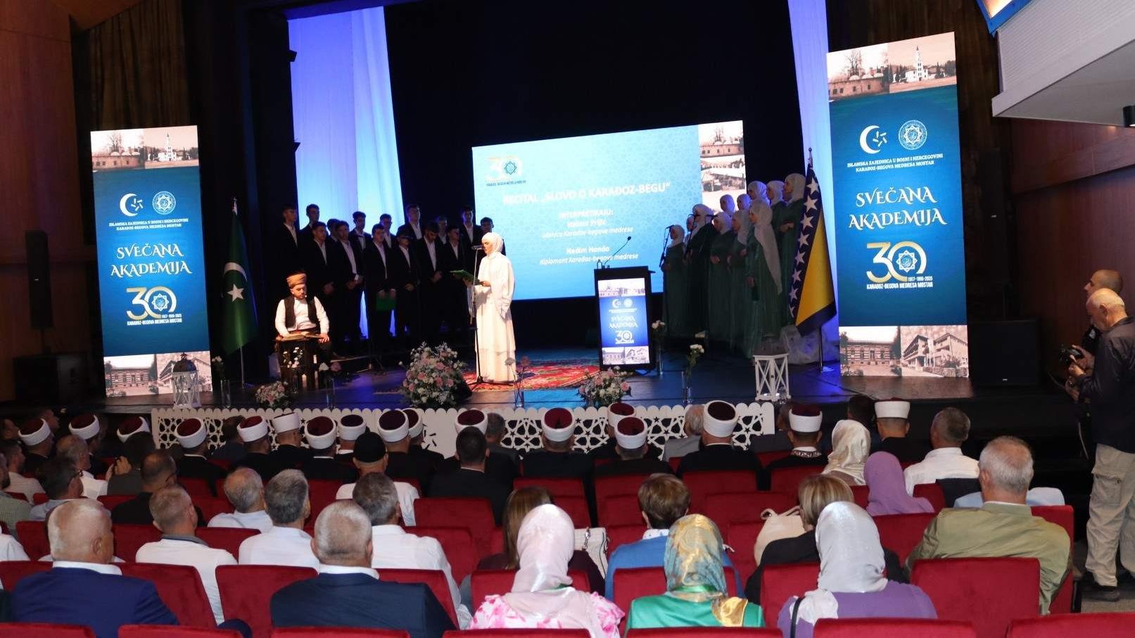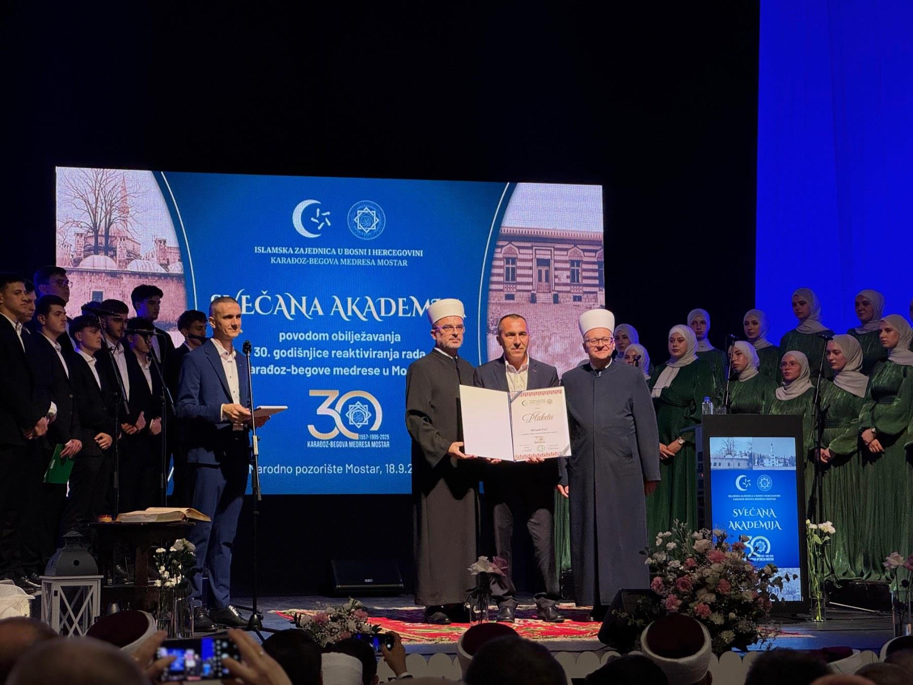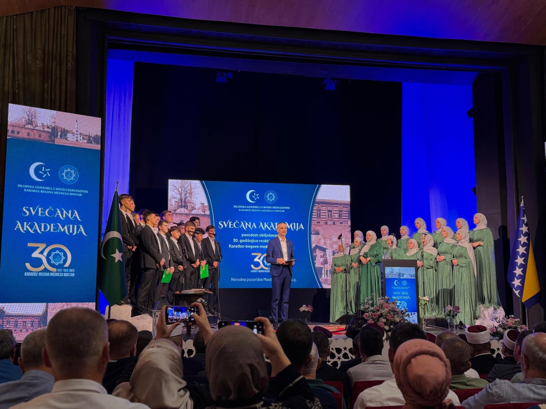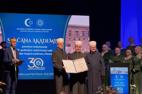 Svečana akademija povodom 30. godišnjice reaktiviranja rada Karađoz-begove medrese i obilježavanja 468 godina od osnivanja ove druge po starini odgojno-obrazovne institucije u Bosni i Hercegovini održana je 18. septembra 2025. godine u Narodnom pozorištu Mostar.