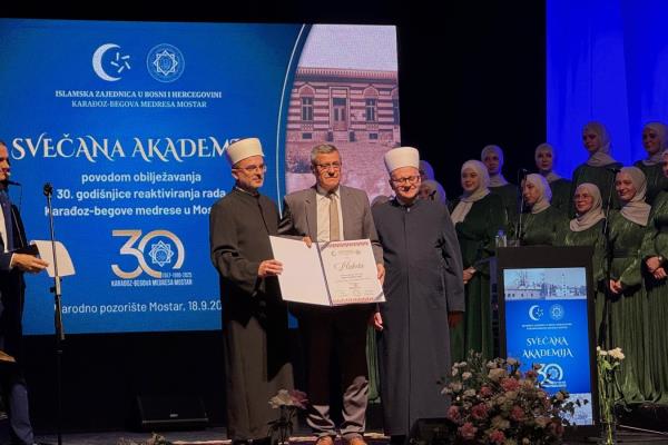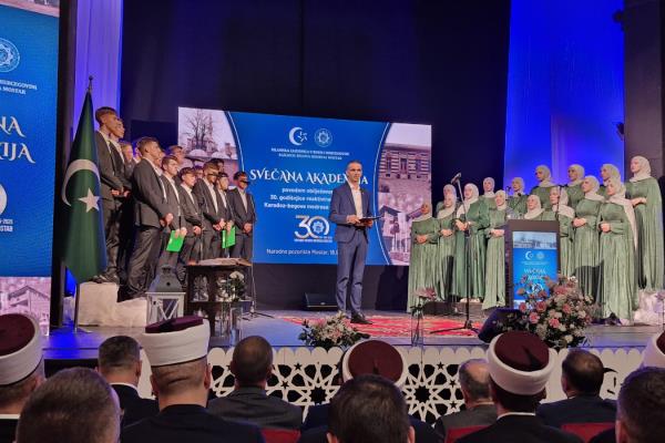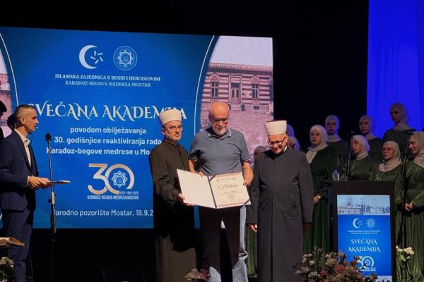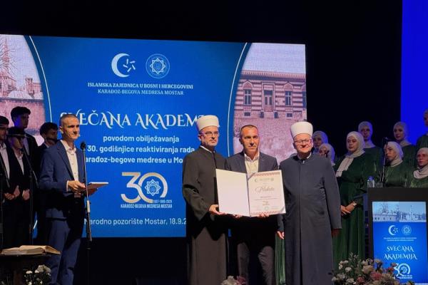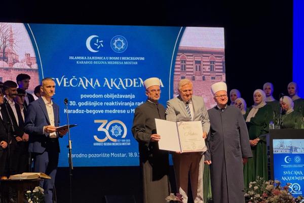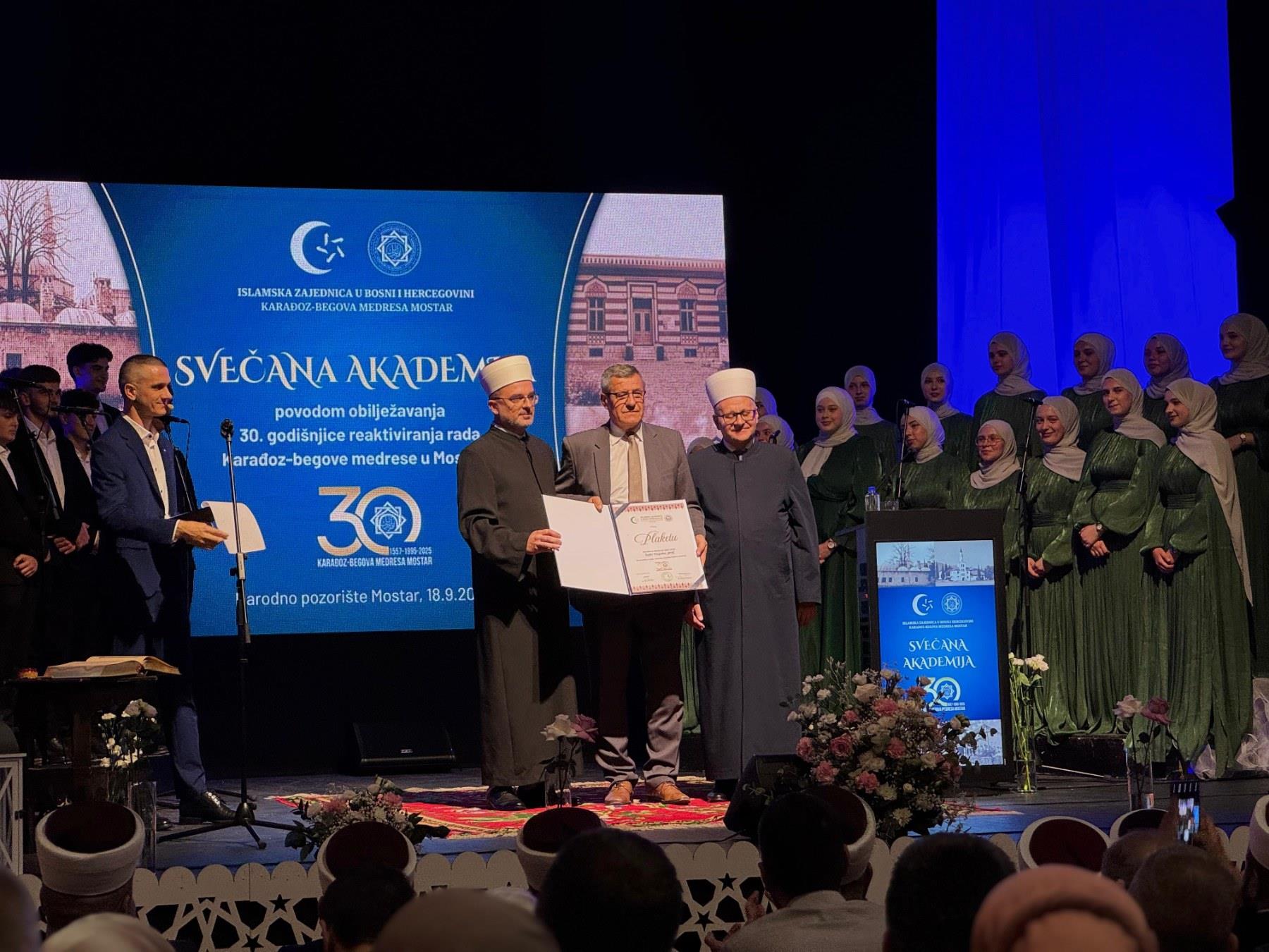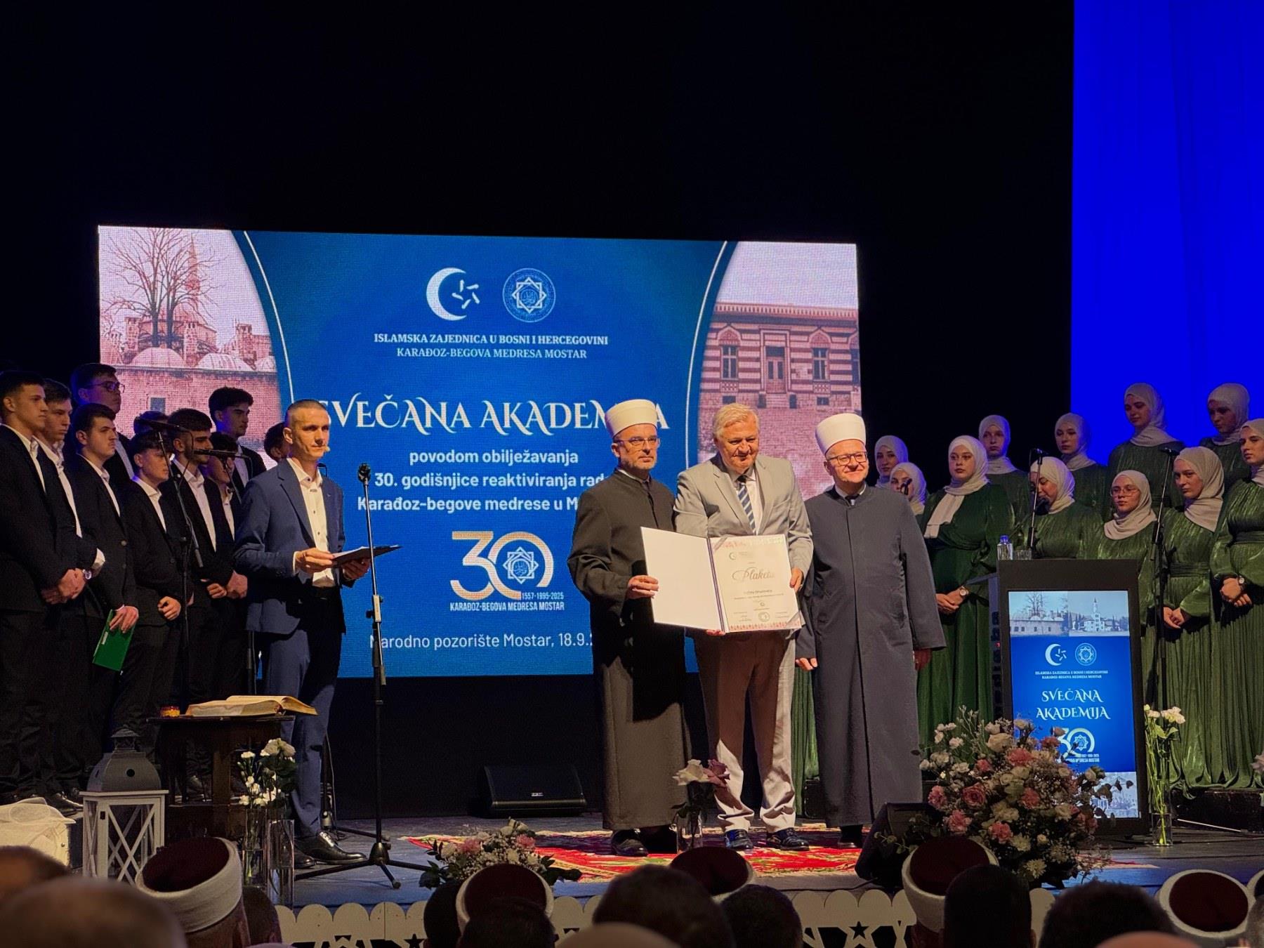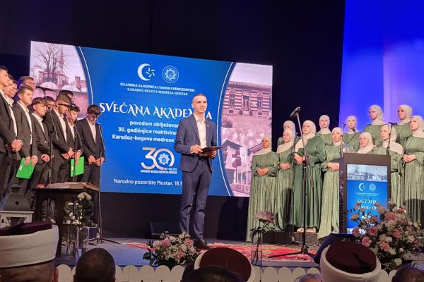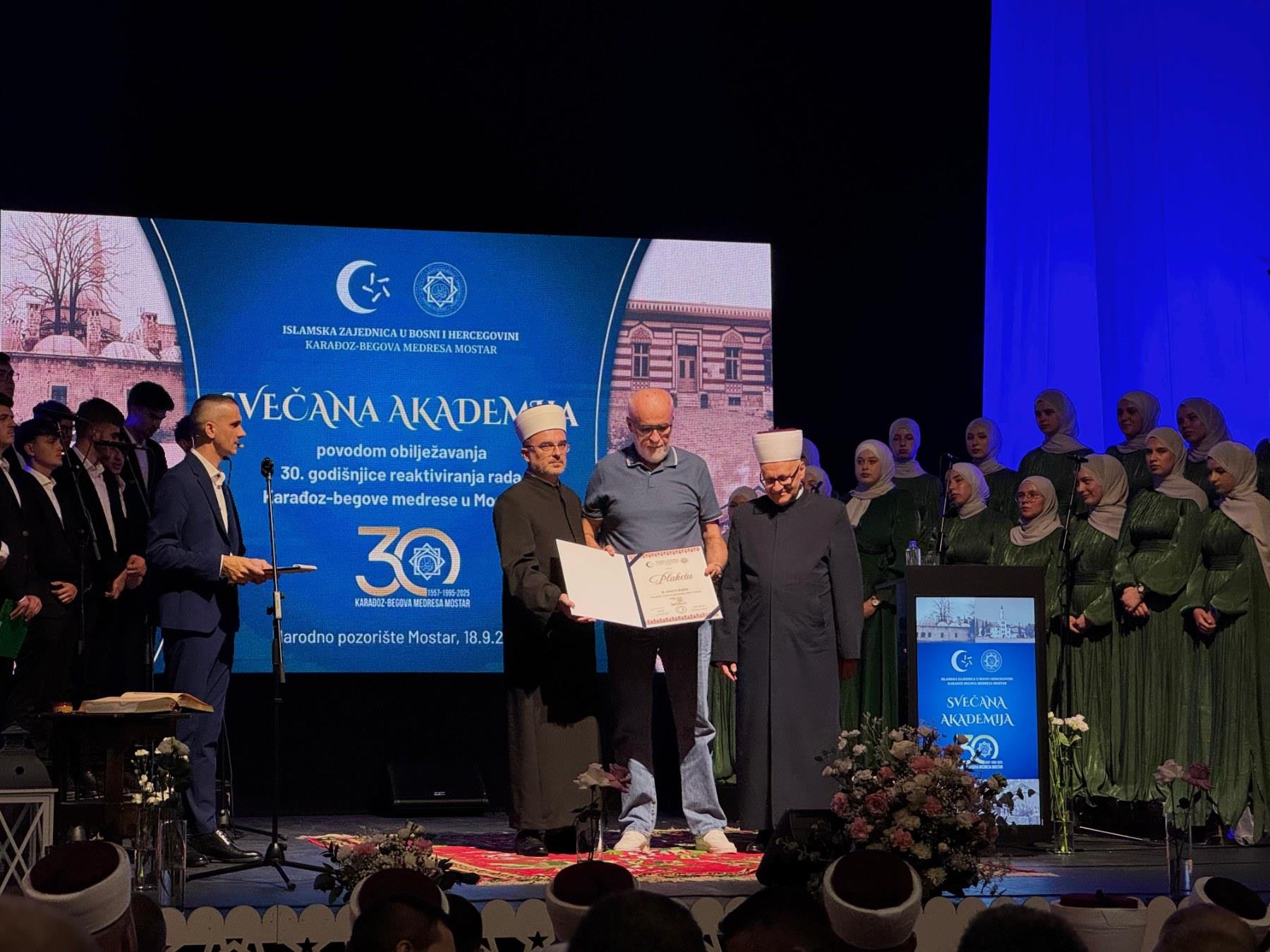 Svečana akademija povodom 30. godišnjice reaktiviranja rada Karađoz-begove medrese i obilježavanja 468 godina od osnivanja ove druge po starini odgojno-obrazovne institucije u Bosni i Hercegovini održana je 18. septembra 2025. godine u Narodnom pozorištu Mostar.