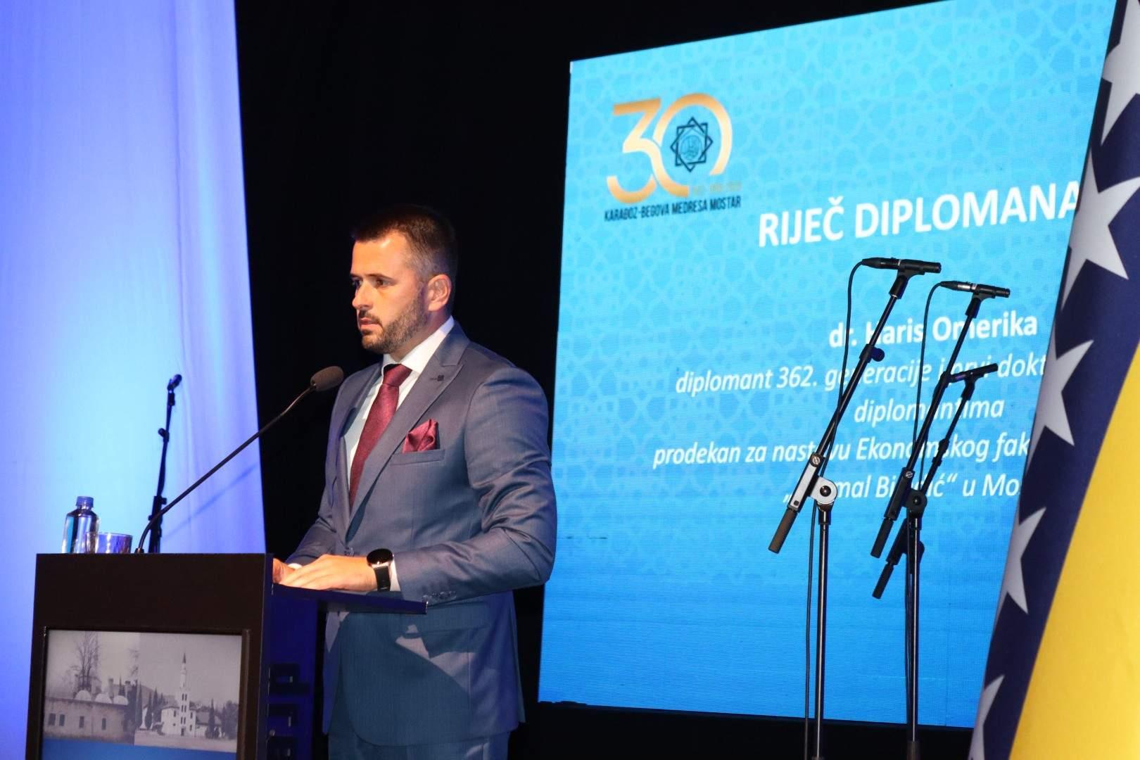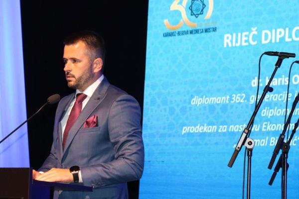 Poruku u ime 1221. diplomanta Medrese uputio je dr. Haris Omerika, prvi doktor nauka među našim diplomantima, a danas prodekan za nastavu Ekonomskog fakulteta Univerziteta „Džemal Bijedić“ u Mostaru.