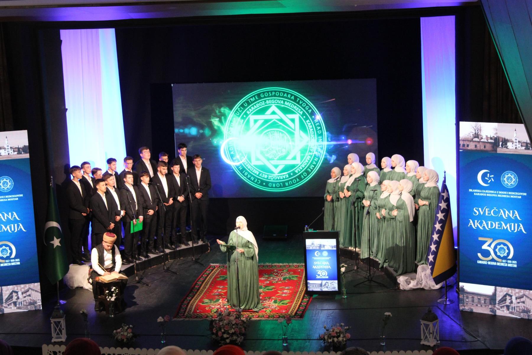 Ilahijama i kasidama: „Sjećanje na Bega“, „Softe“, „Bistra rijeka“ i „Melodija mladosti“ Svečanu akademiju posebnom je učinio Hor Karađoz-begove medrese, dok je to kroz interpretaciju određenih tekstova iz historijata i značaja ove škole uradio profesor Meadin Mrndžić.
