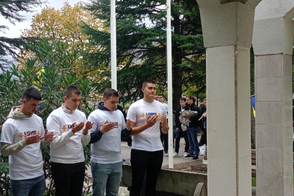 Među mnogobrojnim okupljenim bili su učenici i profesori Karađoz-begove medrese. Naše učenike predvodili su profesori Šefko Tinjak i Elmedin Ljevo.