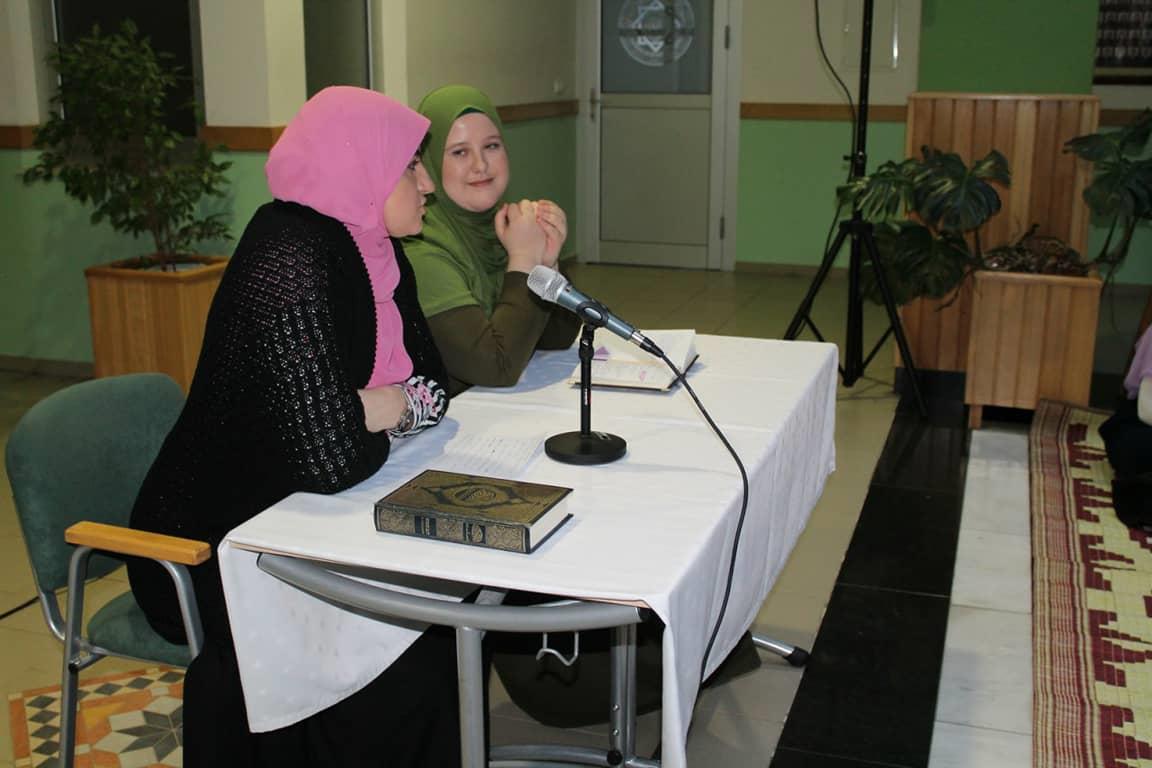 Na osnovu onog što je ona doživjela u Karađoz-begovoj medresi, koju i danas nosi kroz život kao najljepšu uspomenu, poručila je našim starijim učenicama da uvijek budu na usluzi mlađim učenicama, jer im je i njihova podrška neophodna za lakše uklapanje i prilagođavanje nekim novim okolnostima i životu u Internatu i Medresi općenito. Nakon predavanja druženje u povodu Dana hidžaba nastavljeno je uz slatku zakusku, tokom koje je nastavljen ugodan razgovor sa našom diplomanticom.
