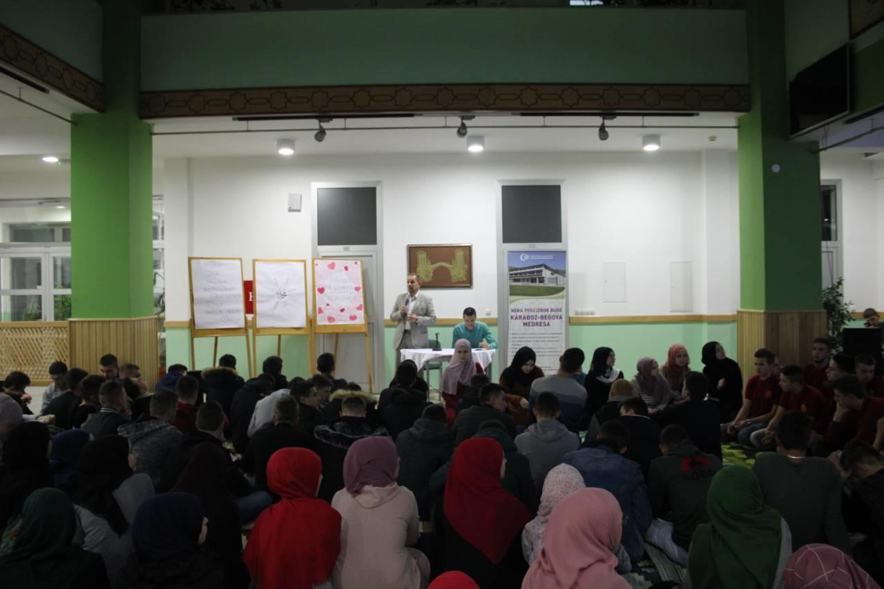 Večeras je, 15. novembra 2018. godine, u Karađoz-begovoj medresi održano prvo predavanje u okviru ciklusa predavanja “Poslanik, a.s., u priči”, a koji se realizuje u sklopu manifestacije “Uzor si mi, Poslaniče”.