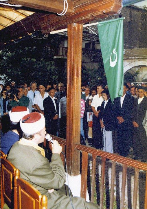 Na kaldrmi džamijske avlije Koski Mehmed-paše, nadomak Starog mosta, 18. septembra 1995. godine začuše se ajeti plemenitog Kur'ana. Zvonki glas znamenitog hafiza Hercegovine, ali poznatog i mnogo šire, profesora Emina Tucovića, obilježi početak reaktiviranog rada najstarije odgojno-obrazovne institucije u Hercegovini.