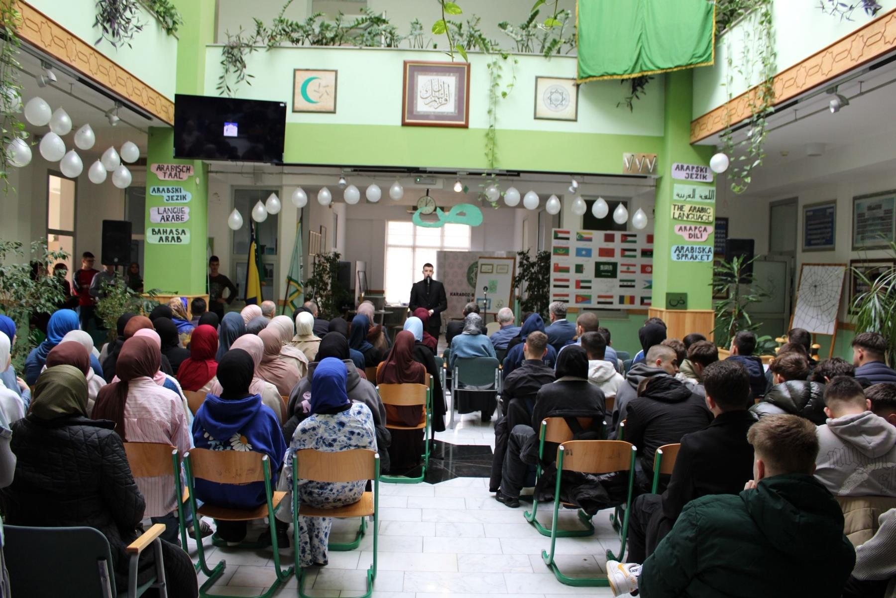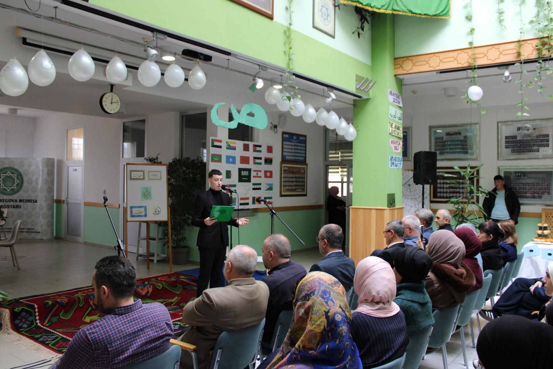Moto ovogodišnjeg obilježavanja 18. decembra - Međunarodnog dana Arapskog jezika je: Putevi inovativnosti u sferi naučne produkcije i reprodukcije na arapskom jeziku. Na tom tragu je bio i program koji su pripremili učenici i profesori naše škole, a koji je održan u atriju Medrese.